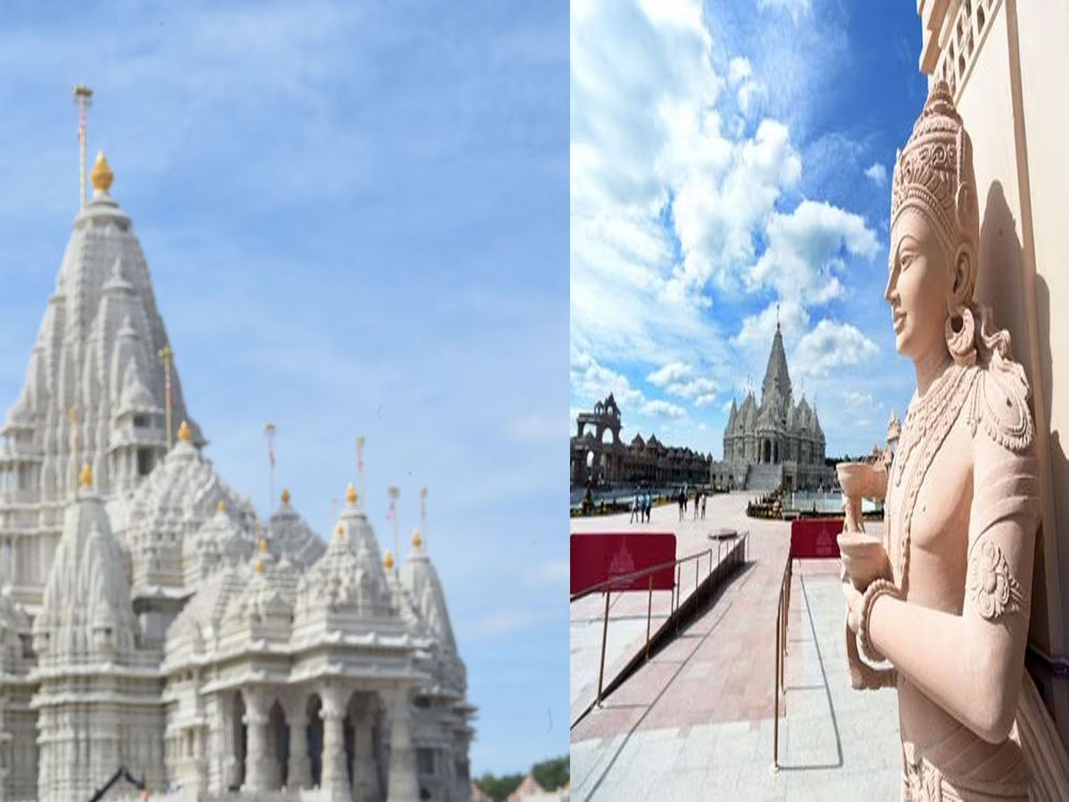 અક્ષરધામ મંદિર US: અમેરિકાના ન્યુ જર્સી શહેરમાં વિશ્વના બીજા સૌથી મોટા અને પશ્ચિમી ગોળાર્ધમાં સૌથી મોટા હિન્દુ મંદિરનું ઉદ્ઘાટન કરવામાં આવ્યું છે. ન્યૂ યોર્ક સિટીથી 99 કિલોમીટર દક્ષિણે, ન્યૂ જર્સીના રોબિન્સવિલે શહેરમાં 185 એકર જમીન પર આવેલું આ અક્ષરધામ મંદિર 191 ફૂટ ઊંચું છે. આ મંદિરનું ઉદ્ઘાટન ‘બોચાસણવાસી અક્ષર પુરુષોત્તમ સ્વામિનારાયણ’ (BAPS)ના મહંત સ્વામી મહારાજની હાજરીમાં કરવામાં આવ્યું હતું.