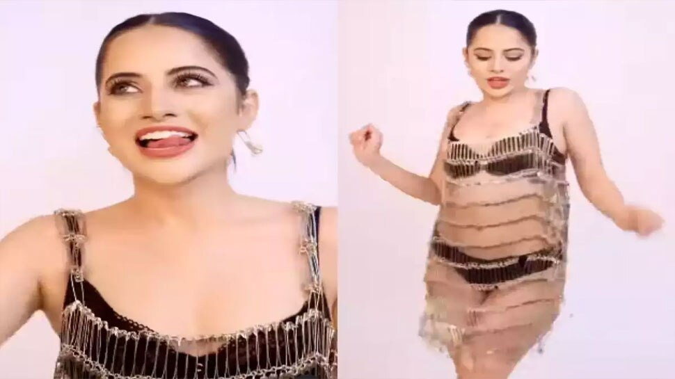 આ ડ્રેસ સાથે ભાગ્યે જ કોઈ સ્પર્ધા કરી શકે છે. ઉર્ફીનો આ આખો ડ્રેસ સેફ્ટી પિનથી બનેલો છે અને આ લુકમાં તેણે ક્રિએટિવિટીનું એક અલગ જ ઉદાહરણ રજૂ કર્યું છે. ઉર્ફી આ સેફ્ટી પિન ડ્રેસમાં ડાન્સ કરતી જોવા મળી હતી.