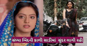 આ બ્લેક કલરની પ્રિન્ટેડ સાડીમાં સંધ્યા ખૂબ જ સુંદર લાગી રહી છે.